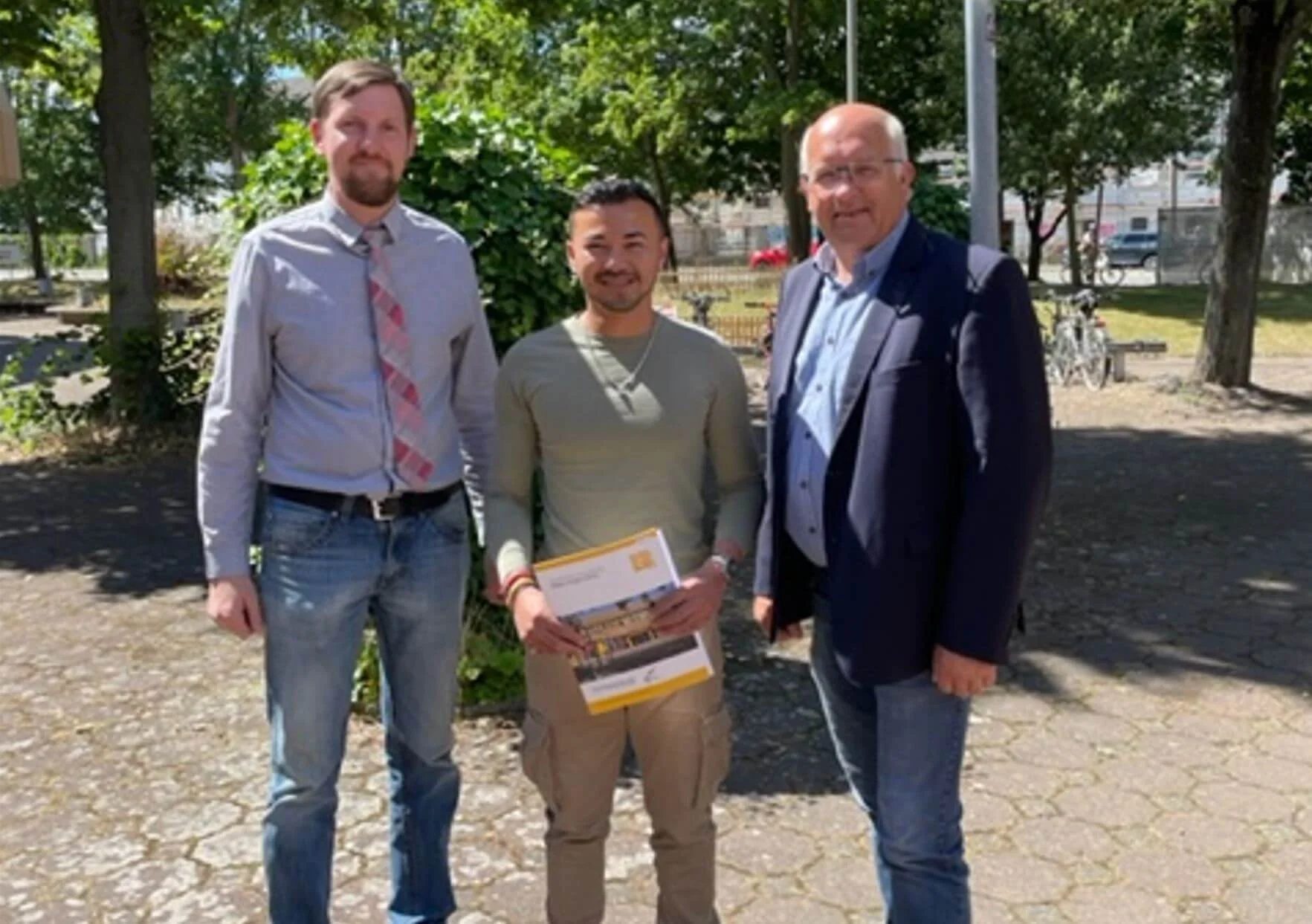 Thanesphong Blötz (mitte), Ausbildungsleiter Sven Dannhauer (links) und Geschäftsführer Klaus Nickel.